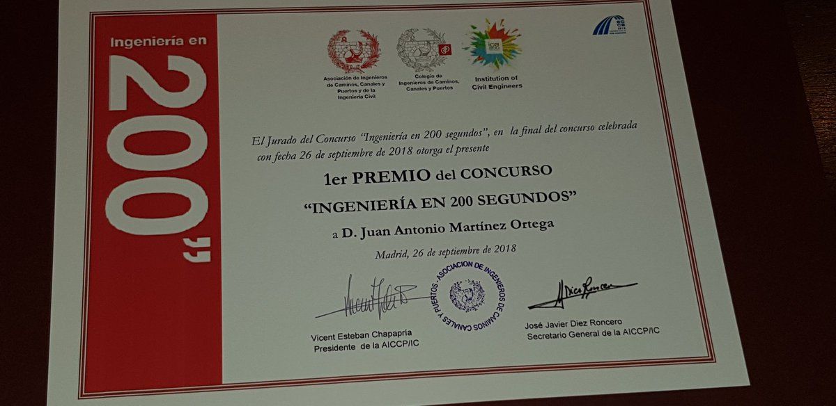 El pasado 26 de septiembre tuvo lugar la final del Concurso «Ingeniería en 200 segundos». Basado en el concurso «Pitch 200» organizado por el ICE, en ambos casos se trataba de buscar el ingeniero que mejor expresase un concepto de ingeniería civil en doscientos segundos.