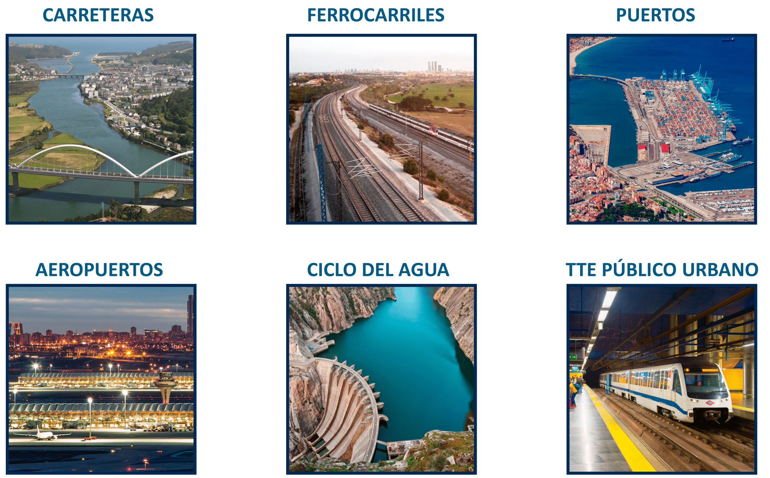 Se analizan un total de seis sectores: Carreteras, Ferrocarriles, Puertos, Aeropuertos, Ciclo Completo del Agua y Transporte Público Urbano. Para cada uno de ellos, se evalúan ocho aspectos, denominados «Criterios«: Capacidad, Prestaciones, Financiación, Adaptación al futuro y sostenibilidad, Operación y Mantenimiento, Seguridad, Resiliencia e Ingeniería e Innovación.